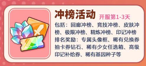 开服冲榜,包含6种冲榜活动:回廊,竞技,皮肤,极限,精炼,印记