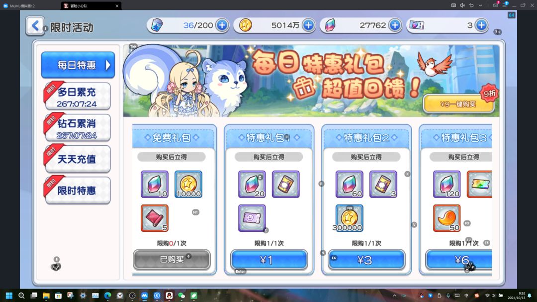 5.少女兑换券礼包:稀有少女兑换券*1+钻石*2680,共3份,每份268点券
