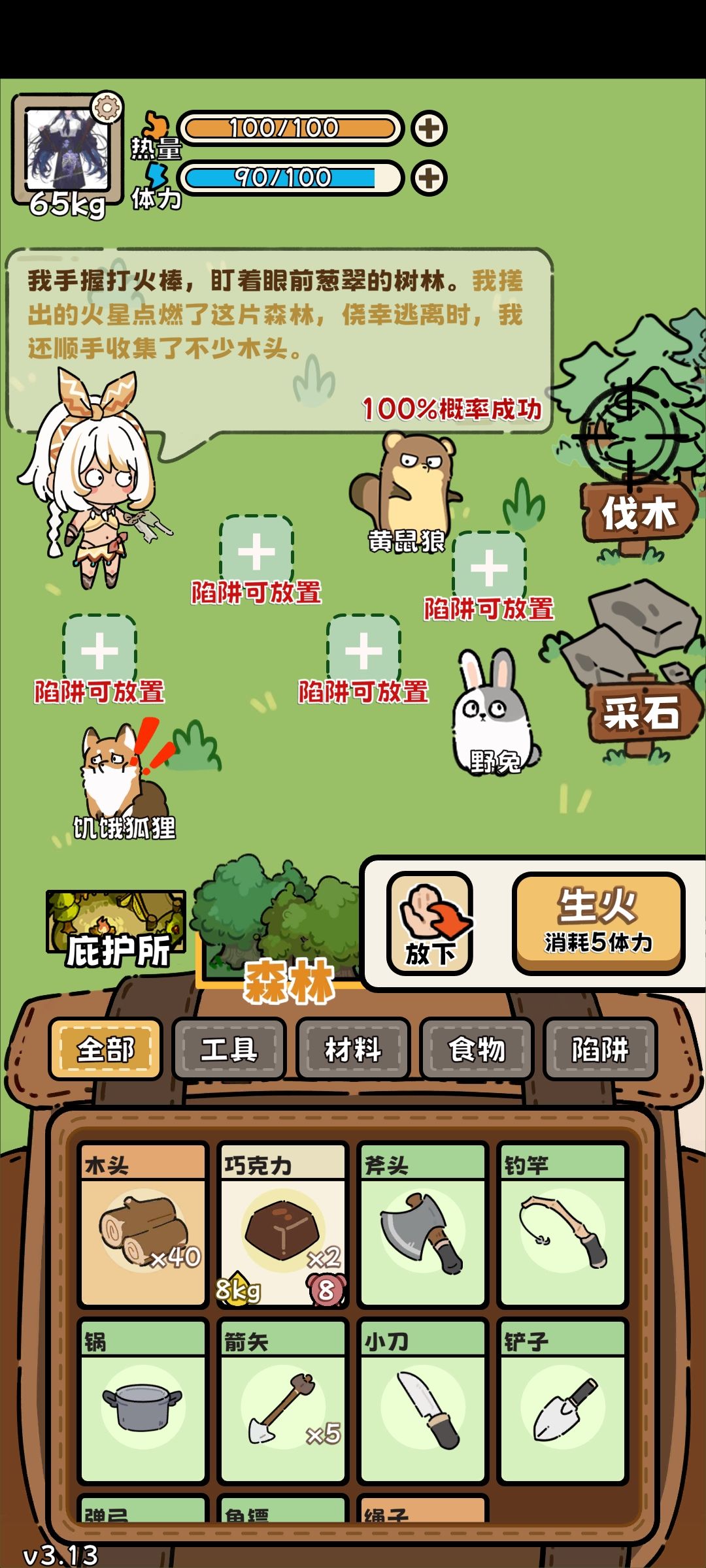 而且小狐狸的打猎能力其实也堪忧,冬天和主角被困于冰原,这时候,你可可爱爱的小狐狸戴着项圈每天都给你叼一只鹌鹑或鲟鱼回来,你将猎物处理了,给小狐狸吃你刚从冰块里融出来的浆果,而你的存粮早已见底,一人一狐就这么在冰原上相依为命,我天~好感动┭┮﹏┭┮,我脑袋里已经有画面了。