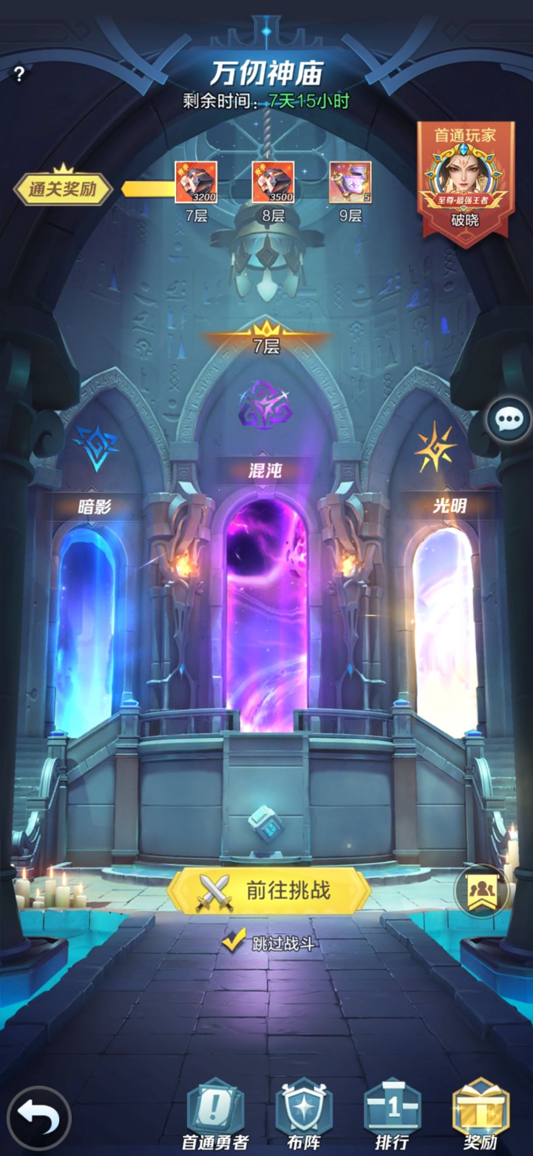 零氪第十七天,之前抽了次花灯,脸太黑了😰,钻石有点少这波不抽了,神庙七层打不动了,战力破千万