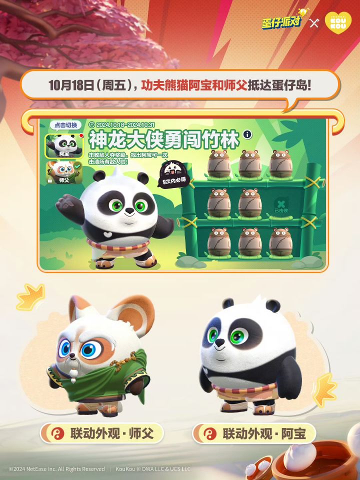 身怀绝世武艺的功夫熊猫阿宝与师父即将抵达蛋仔岛!