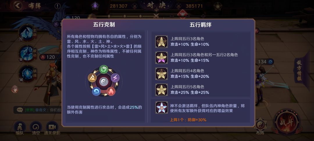 游戏中的魂将分为雷、风、水、火、土、五种属性,每种属性之间存在着相克和被克的关系。属性的克制在战斗中会影响到伤害的加成,神作为特殊属性,不被任何属性克制也不克制任何属性,玩家需要根据敌方的属性来合理搭配自己的魂将阵容,以取得战斗的优势。