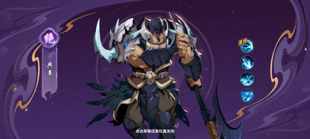 典韦:典韦是开局白送的主力坦克,拥有极强的生命值和防御力,能够承受敌人的大量攻击,为队友创造安全的输出环境。他的技能可以回复自身已损失生命值的30%,并且获得7秒的30%减伤效果,还有免疫无法行动的能力后期非常肉,抗压能力强,通过活动升星也快,前期要重点培养。推荐指数🌟🌟🌟🌟🌟