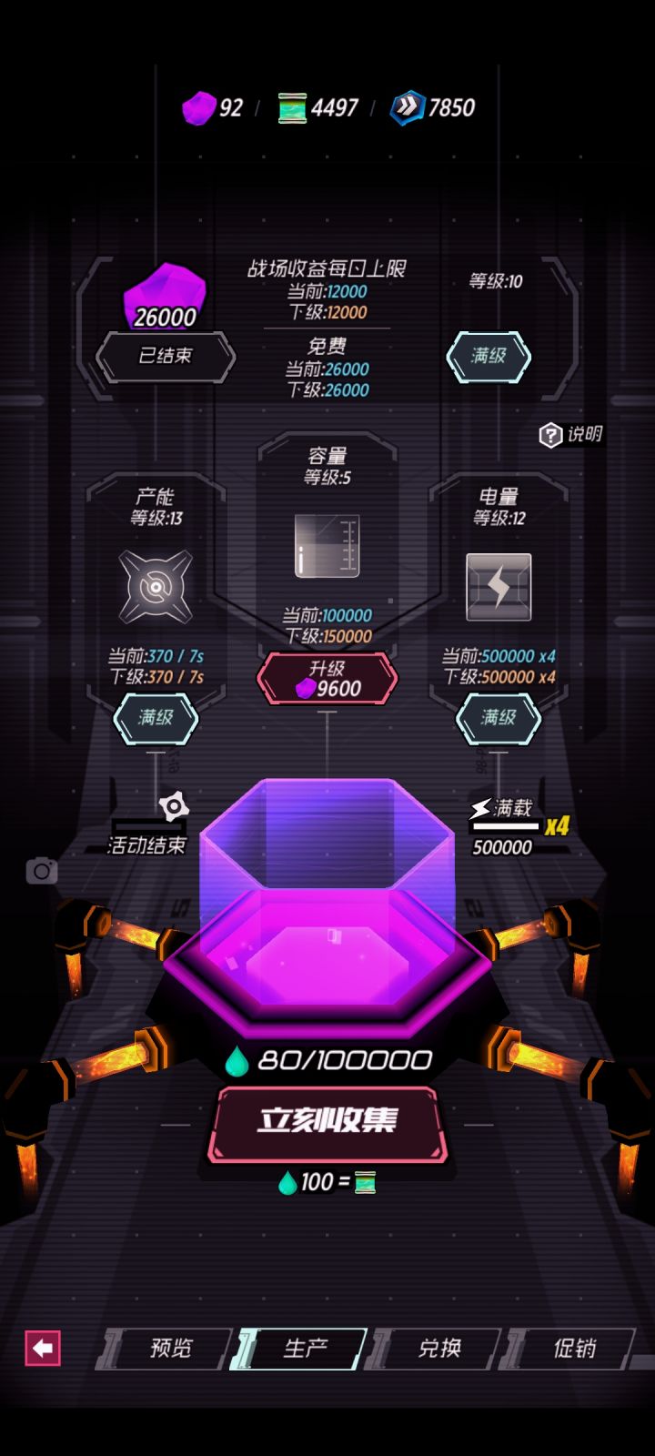 还挺赶的,基本半个小时收一次了,每天的加速充能都用完了,基本上每天砖石买完,偶尔用一次加速币,最后两天又刷了3000币,才拿到手。一开始升每日上限和产能了,过两天发现电量跟不上,又升的电量。总的来说还好吧,基本12点刚过刷完今天紫色石头,升级,等白天完成,平均一个小时收一次。