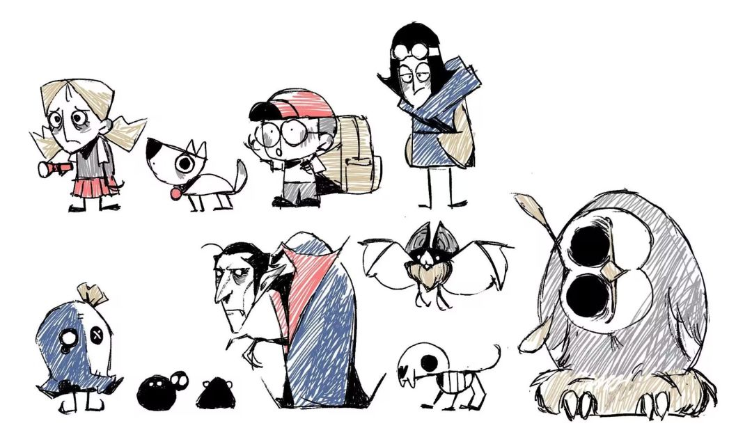 咱们主美设计的超级棒,而且酷似饥荒的人设图