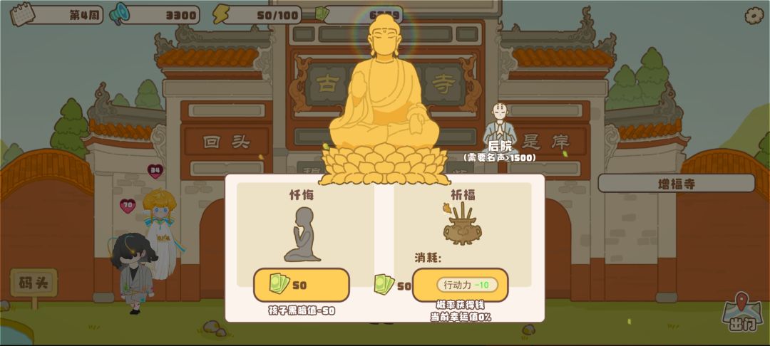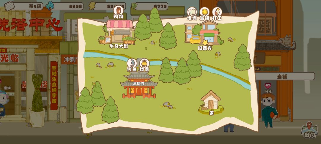 关注晨报,可以送外卖,当房地产中介,可以当铺卖掉不需要的物品,可以增幅寺祈福,概率获得金钱,毕业了的孩子有时候也会写信送钱