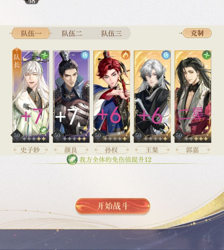如果 BOSS自爆后可以剩一个角色,但是普攻抗不住,有二星郭嘉可以试试这个阵容
