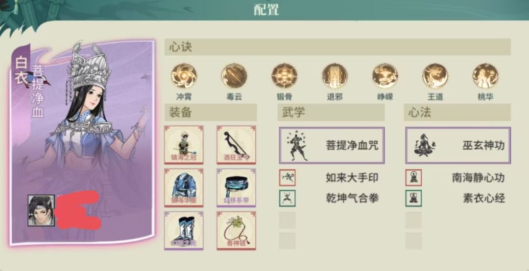 洗1定力1悟性,可得额外85悟性。冠袍带簪4件里选1件洗3%闪避,凑60%减伤。技能顺序3内421。