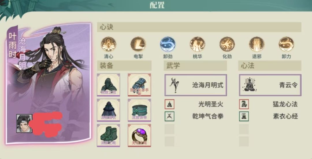 之前也配了个皇极剑侠客,枕徽皇极剑。把张良的卸力金刚给枕徽,就配出来了。腰带洗根骨,饰品洗定力。2.5集气,59.4减伤,额外51定力,111福源。相比于公孙妤、王维要肉,还能帮队友持续抬血。配合遁甲,刷冷却很快。