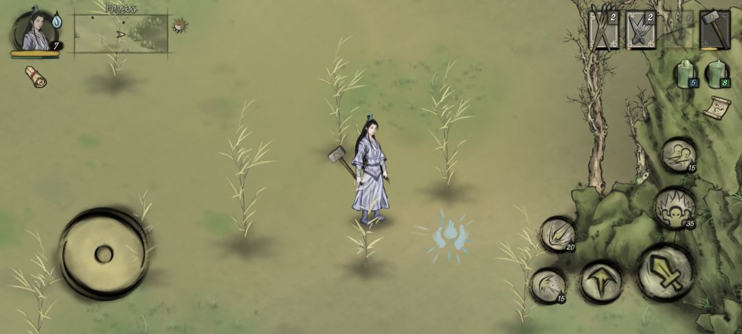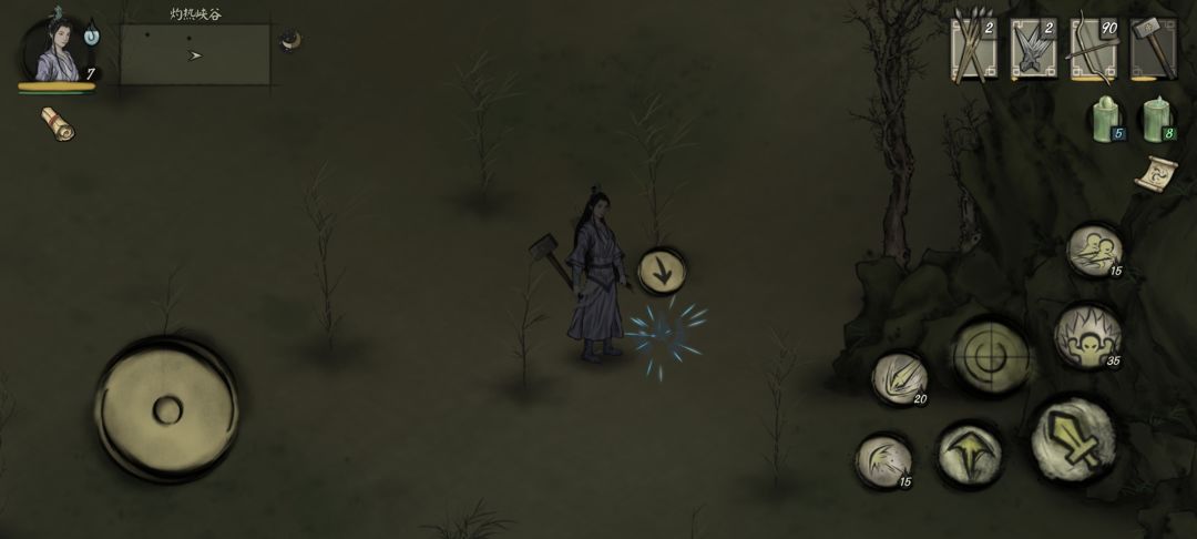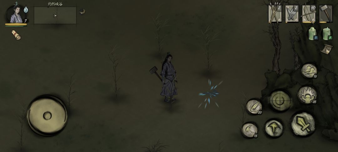 玄空表示蝎子怪可能得有机缘(会预判技能),要我们去找另一个游者了解,通过地图定位指引(如图),我们可以找到地上的蓝色符文,靠近后触发,回去找玄空说明继续任务。激活符文需要我们收集四个胆内核,由边疆地区的食人虫掉落,收集同时可以顺便提升一波等级。收集够后再次找到玄空获得药水,携带药水去发现符文的地方激活符文。靠近点击“↘”图标放置药水,符文变成“→”形状,按照指引我们要前往边塞(图中绿圈位置,位置较远,建议传送前往),我们会见到新的NPC-暮白法师。暮白说与我们有缘,但是先要求我们去杀一些背刺怪(正好提升一下等级),杀够8只回来复命,暮白说这是一只进化蝎子怪,而且洞悉时彼此都察觉了对方(额,环太平洋了属于是),我们回到避难谷,和王尘谈论。(*此时可以找玄空接一个小任务)。王尘了解后请求我们消灭蝎子怪,位置如图,离东贫瘠之地很近,靠近点位后自动触发boss战,boss会在残血时逃跑。我们回到避难谷将此时告知王尘,王尘告知我们还要找暮白法师,只是他已启程去了别处(第二张图),我们去避难谷东南侧找到NPC-穆伯,带我们前往第二章。(此处开启第二章会有一次保存,不要着急,等待片刻再和穆伯交谈,点击“苍穹大漠”前往图二)。至此,第一章的主线结束。(支线任务主要是打虎和蝙蝠怪两个大支线,附加上隐藏任务,以后有机会我再单独来做,希望这些文字对新玩家有所帮助)![[表情_开心]](https://img.tapimg.com/market/images/48516f625646b5ea2c66f0cab3c9c52a.png)