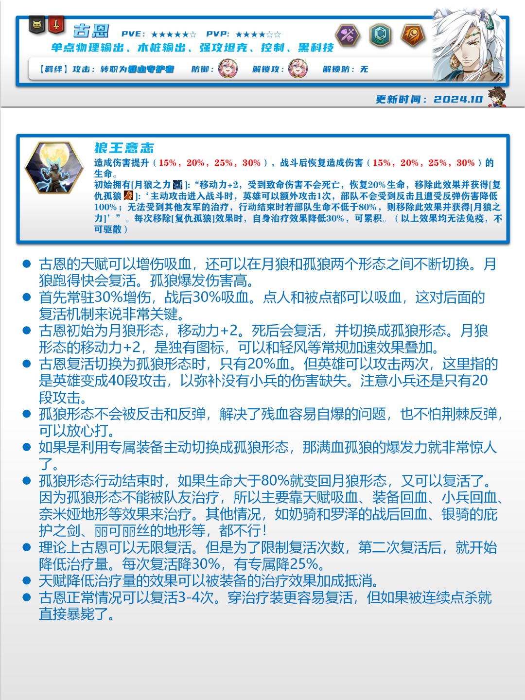 【古恩】英雄攻略 白狼王 梦战 梦幻模拟战