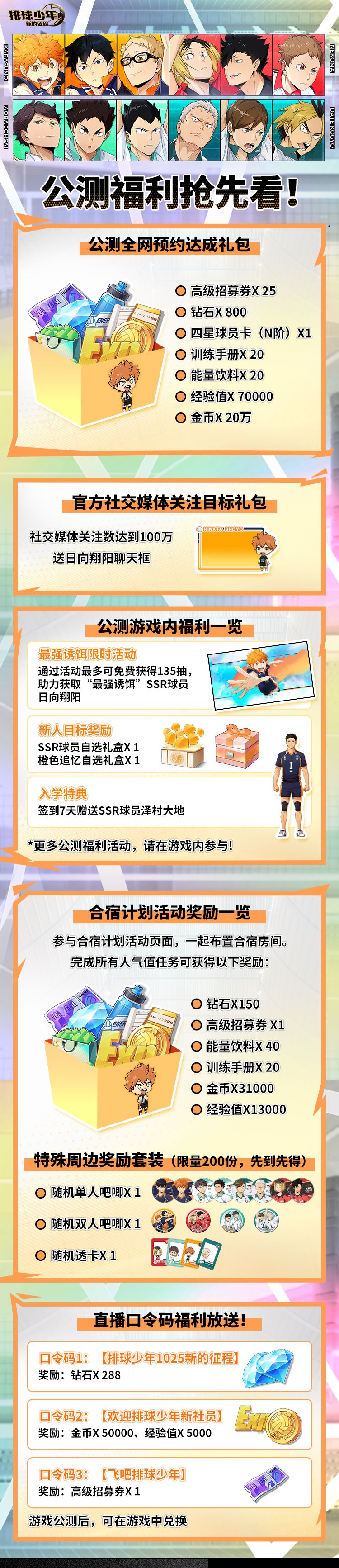 《排球少年:新的征程》公测福利!开服活动累计免费可得近200抽!