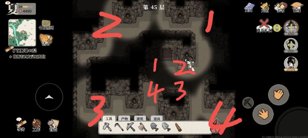 图1为矿洞45层任务要求,图2图3为45层大致情形。