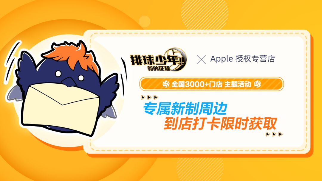 排球少年手游 x 苹果授权专营店,专属新制周边,到店打卡限时获取!