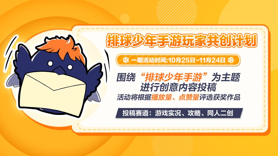 排球少年手游玩家共创计划接开启!欢迎同学们踊跃参与报名!!