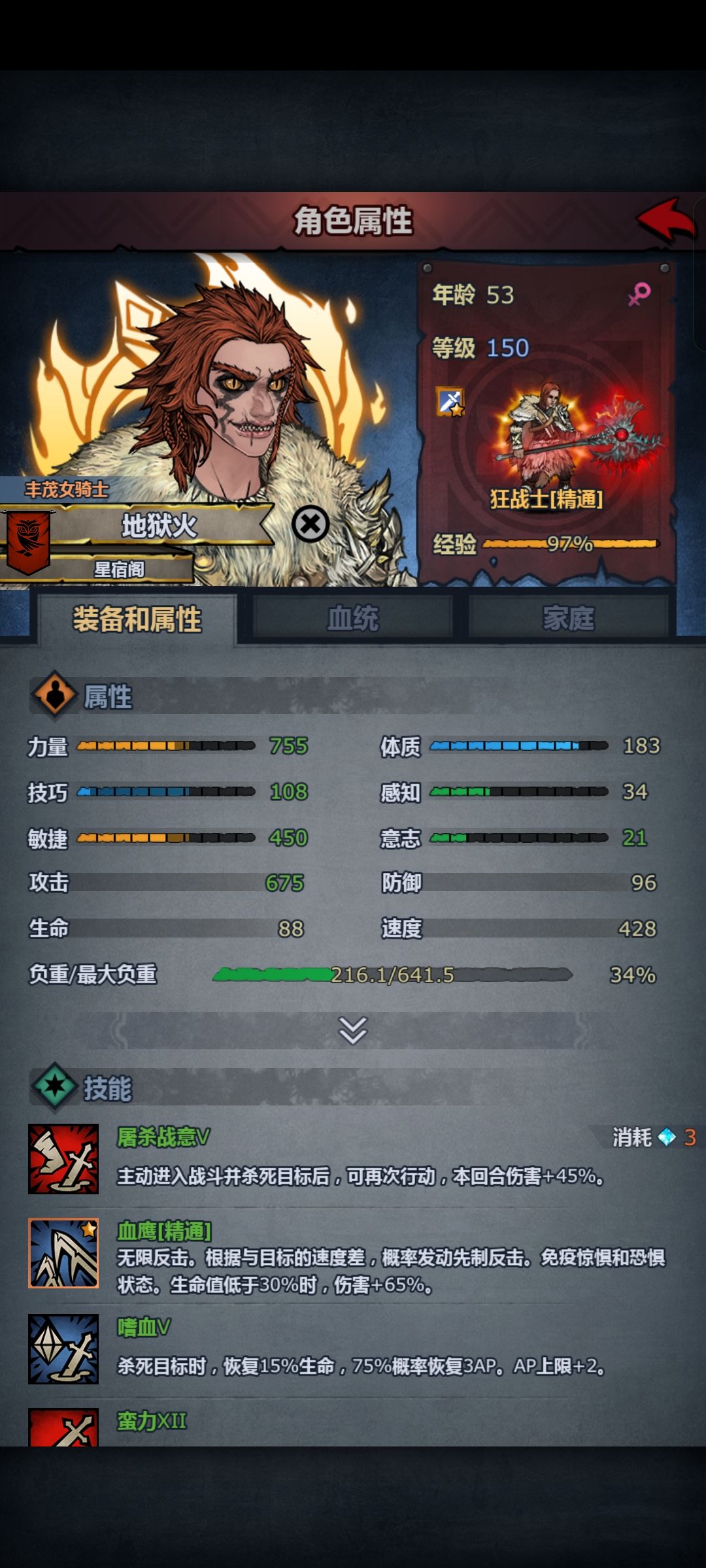 直到玩了狂战,我发现其实狂战基本上不用怕技巧不够会偏斜,四个字概括就是力大飞砖,狂战偏斜打人伤害也是很高的。所以狂战培养可以不用特意去堆技巧。有技巧套就更不用刻意去吃长弓了。凑150技把技能拉满就差不多了。有技巧套的建议直接一级三转狂战吃满,没有的吃60长弓或者90长弓,技巧、体质两个一定要能凑150血满技能,然后是意志尽量凑120学信仰+AP上限。