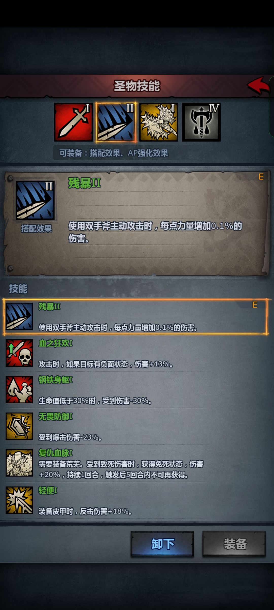 最低配置:3+12双手斧+三级神器甲(随便几级)+一级圣物必带残暴