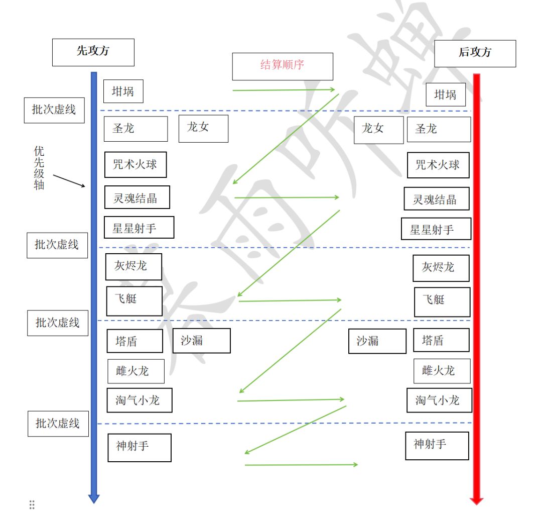 ④结算顺序从先攻方开始排序,少了某一条则按箭头继续向下顺位