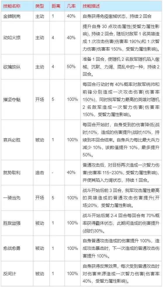节点5:就势取利、一骑当先、胜敌益强、愈战愈勇、反间计、近战方阵、乘其阴乱、趁火打劫、难知如阴、一箭双雕