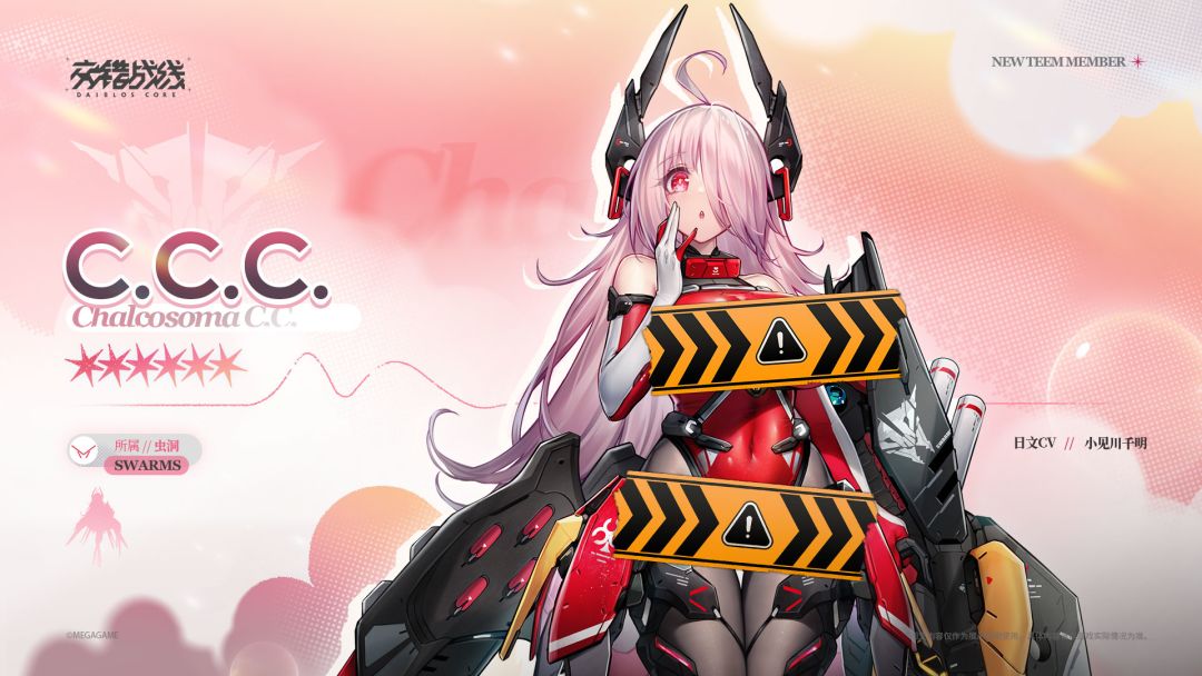 代号Chalcosoma C.C.,简称C.C.C.,本名拉芙塔·卡比,出身自卡洲未来基金会为收容战争孤儿所建立的修女院。 在与C.C.C.相处的过程中,救援的医师认为,尽管C.C.C.个性古怪,但却拥有极佳的战斗天赋,并有相当充沛的体能,是适配武装的极佳人选。