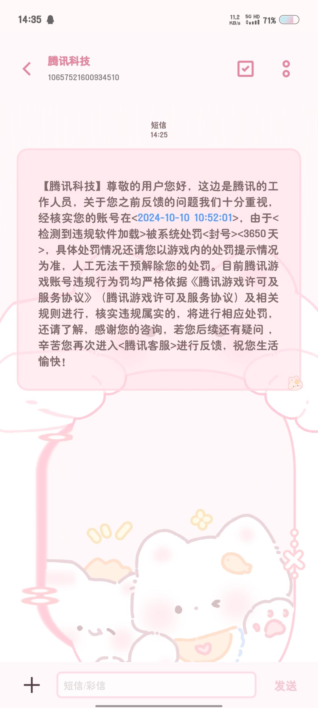 我于十月一号游戏账号被盗号一天 二号找回发现被封三天 显示游戏环境异常 解封后正常游戏五天没有事 十月十号早上十点多 上线充了个手册然后下线 吃完午饭回来登录游戏被封十年 本人在这拿性命发誓绝没开挂 被封原因修改加载器 我连加载器是什么东西我都不知道我就上线充了个手册 下面截图可以看到我并没有在十号早上十点多有打游戏 我就充个手册 怎么就使用了加载器 以下图片中有找到被盗号的证据 我本人并未开过挂以及我在游戏里玩了几年充值了上万 我不可能拿我自己氪金了的号去开挂 期间上诉了好几次均被驳回 并且联系不到人工客服了 和平精英说我早上十点多开了加载器导致被封 我想请问我就上线充了个手册并没有开游戏我哪来开的加载器 请你拿出证据 以及我前面已经说过我的号被盗过 我也提交了证据 我只是个普通玩家 我里面所充值的钱那是我一点一点的伙食费 莫名其妙被封十年没个交代 这对我来说是多么的不公平 要求给我账号解封 我辛苦养了几年的号 几年来就玩这一个游戏 凭什么这样对我 我拿性命发誓我并没有开过任何挂并且我也不了解那些东西 就只有一号那天被盗了号我不知道对方拿我号做了什么 但那并不是我本人在操作 后期操作并未开过任何东西 你们那么不公平不听诉求 我现在就要个解决 我表示我的态度非常好的 并没有任何辱骂 但我没做过的事就是没做 你要给我个交代 如果是因被盗号后别人乱搞我号 那为何在我解封后五天里 我打了那么久游戏不封 偏偏在我充值之后就给我封了 我不理解 而且你们说检测出加载器是在我充完值那个时间段 我上线充钱 我开什么挂?我拿我养了几年氪了几年的号来开挂?我有什么毛病吗?你们凭什么这样乱封号 如果是因为被盗号导致的 那为什么不能给我一次机会 又不是我开的 又不是我想的 凭什么这样对我#和平精英官方莫名其妙的封号 #和平精英乱封号 #和平精英账号申诉