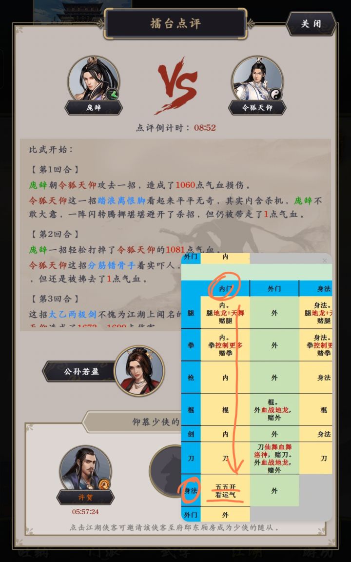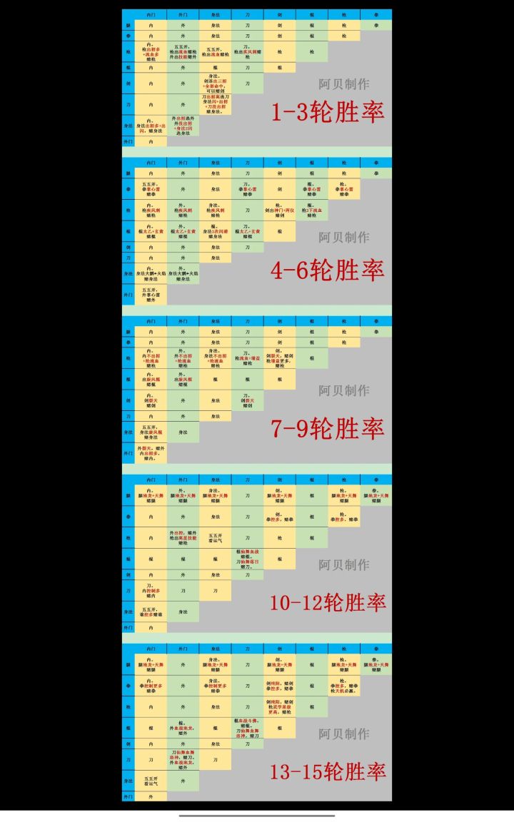 ps: 我可能帖子没说清楚,这个攻略是小半年前(划重点,原文链接就在最开始文案后边)的攻略了,我用到现在都能做参考,你按着这个猜,大多都对的。然后这个攻略里本身有很多是不确定的,图里有写五五开。有些时候对局差距太大,腿前几轮也有靠伤害高打过身法的时候,有时候 1~3 轮拳就出了掌心雷,赌拳!还有有时候会碰到身法演员,第四回合开始疯狂闪避,直接扭死对方🌚,这就没办法了。给小伙伴们的提醒:攻略可供参考,尽信书不如无书,尽信攻略不如无攻略!