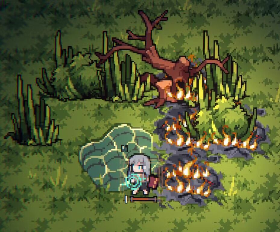 游戏的故事发生在一片辽阔的平原上,周围光线昏暗,仿佛正是黄昏时分。逐渐降临的夜幕笼罩着大地,四周的氛围变得神秘而危险,或许也暗示着未知的敌人正在蠢蠢欲动。回到图片中的环境要素来,不难发现有许多的自然场景,如水坑、火焰、枯木和灌木,这些在地图里可以互动的元素,通过主角们的技能运用起来,应该会为战斗添加不一样的色彩。