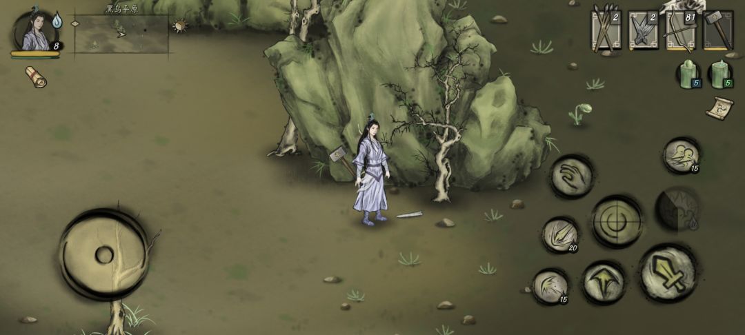 如图位置,在离石柱东南方向不远处一座石山前会有一柄断剑,捡起来触发隐藏任务。然后我们回去报告芷雪,接手此事。