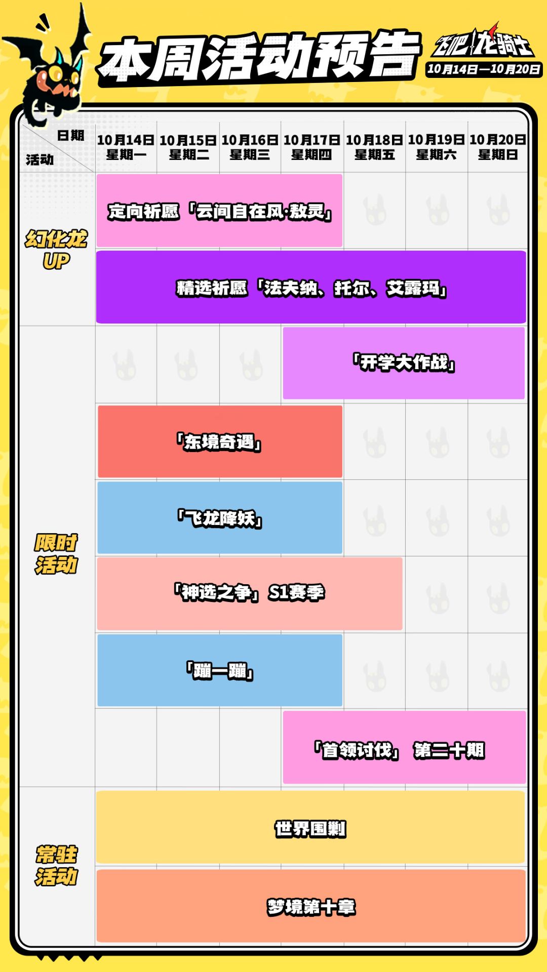 * 活动简介:龙骑士乐园开启开学大作战,进行开学签到、挑战主线/秘境、完成课题研究即可获得学分,学分可在小卖铺兑换装备材料、宝物修复液和训练收益等奖励!