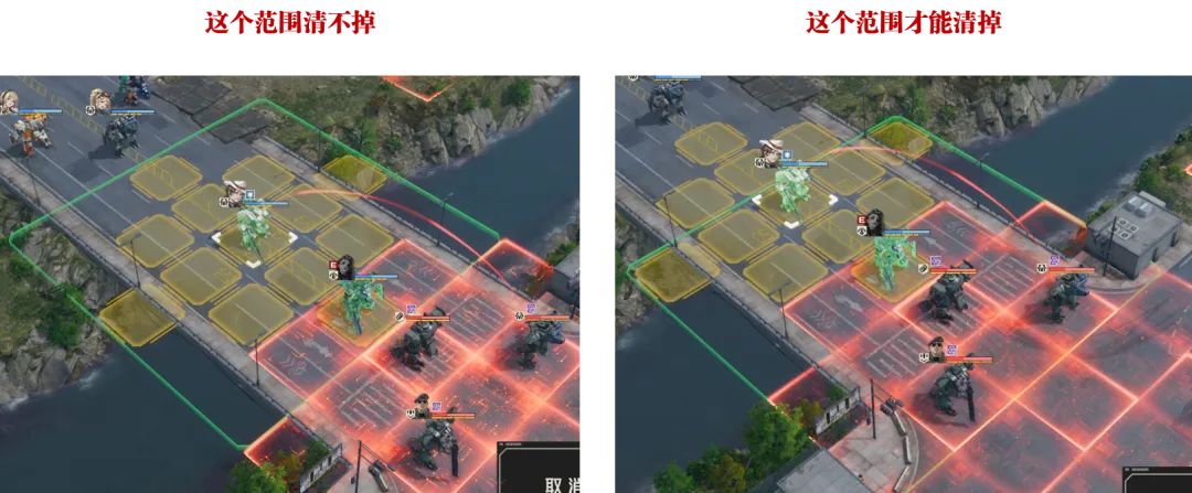 接着在14-3这个关卡中,安德森是可以清掉对方的领域的,不过这个操作大家需要注意,如果我们的5×5奶技范围没有囊括控制领域的这个敌人,则即使我的5×5范围包含了它领域的部分区域,这也是无法清除此领域的!