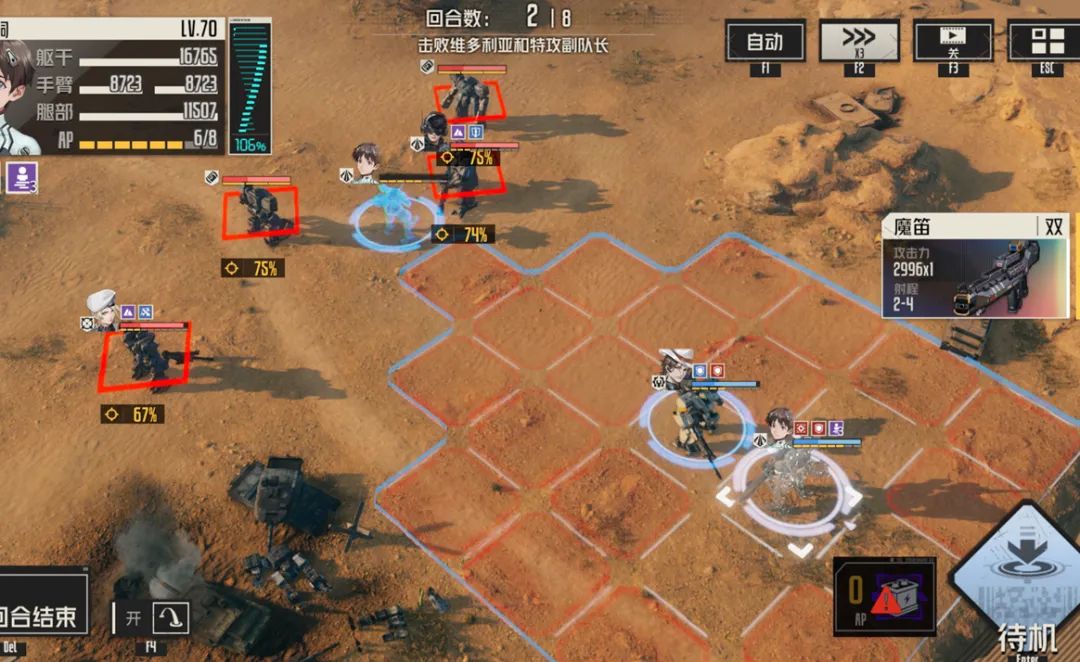 然后是安德森的专属机兵奥德修斯如果达到了彩色,即可发动连续奶或者奶+输出的行动模式,虽然这个操作是一个非常考验AP的操作,不过在部分特殊的时间段还是能起到较高的战术价值,此外骚操作的点在于如果把彩色奥德修斯给格兰特配上,则可以实现1回合三连动的效果......