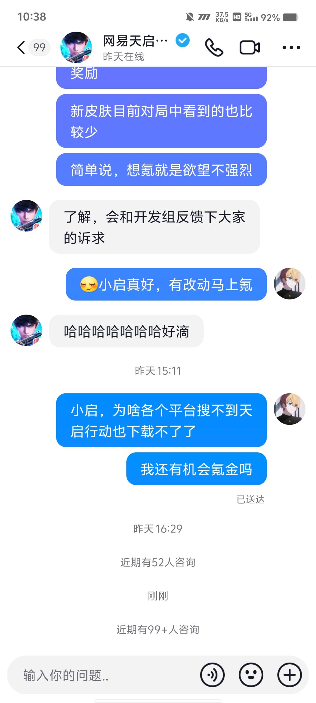 ,中午差点想氪龙枪,喜欢天启的画风,手感和角色建模说实话提升空间很大,但小启只能走到这了,不退钱也别补偿到大家不玩的游戏里呀,有点信任危机了