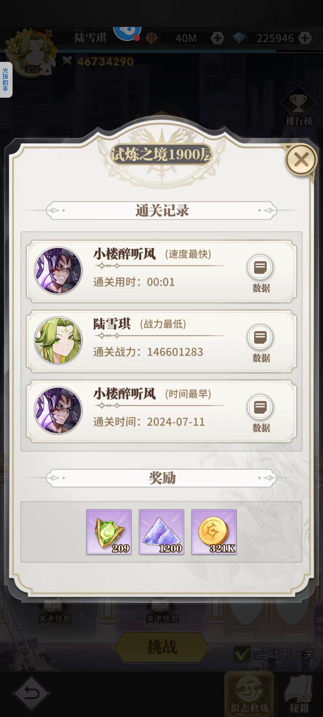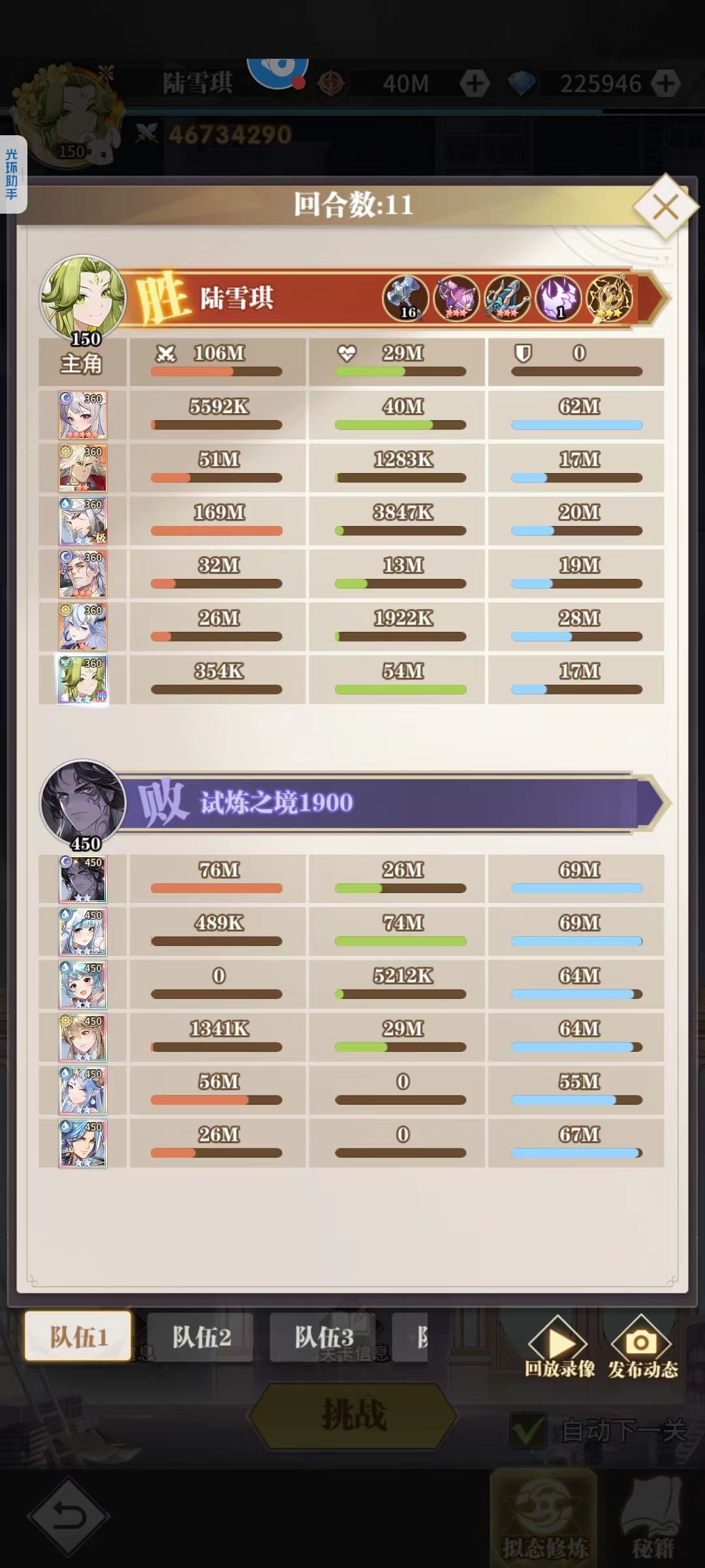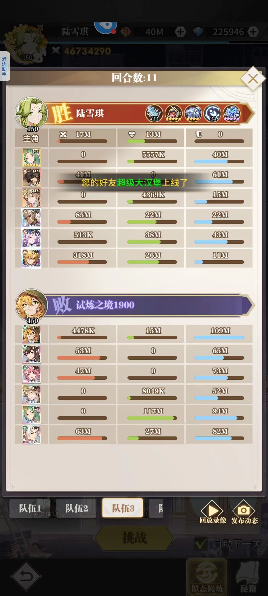 1. 试炼爬塔1800层后需要4支队伍,1900层开始就5队了,毫无希望