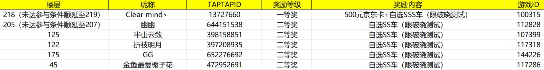 恭喜以下玩家在本次抽奖活动中获奖,请注意查看“TAPTAP APP—消息中心”中的相关信息哦!