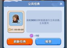 核心是刷新自己的专属任务,只刷练兵提高12万战力的大拳头,别的都是小卡拉米不要看,刷新间隔首次2分钟后面5分钟,刷出来之后不要急着接,自己专属的任务别人抢不掉,这时候就可以看看公共任务池,挑一些自己能快速完成的,如果有练兵加速900分钟或者通用加速,可以拿了,把练兵时间消掉,在练兵结束前,接拳头再收兵,然后再练一批,等这一批结束,任务也就差不多做完了,不够就再少练一点补足12万。