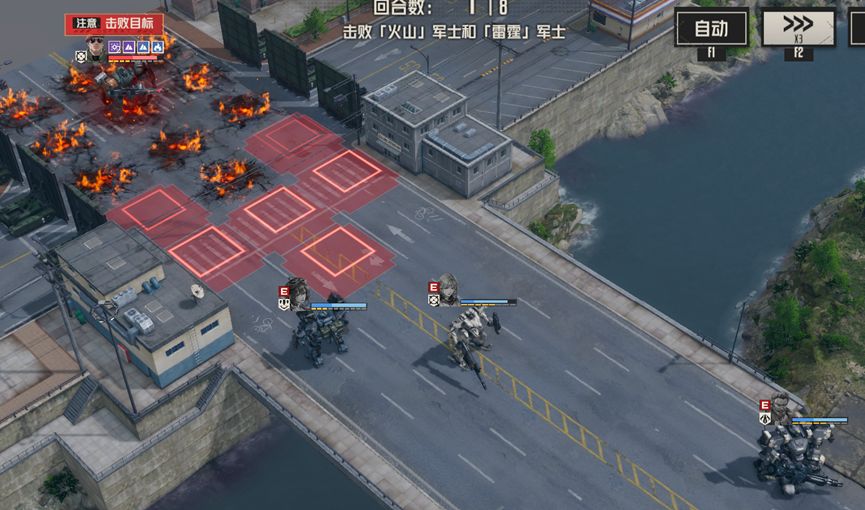 两个boss耐久基本大残,依旧是继续攻击boss。这里注意要把电磁狙击消灭,火狙击可以不管