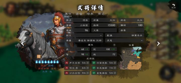 项羽:之前没细玩时,看官方给项羽表面的数据都觉得项羽很弱,相比于其他四大名将和韩信都逊色一筹,这几天我实际游玩中,却很震撼,官方给项羽这个人强度还算可以的,有的时候不能只看技能再动多少,个性多少,而是看冷却和耗蓝以及技能加成比的,白起之所以强,是因为0冷却的侵攻,而这个特点项羽也同样有,并且更强大,霸王刺简直是收割利器啊,8000的巨鹿烈打大众脸武将7000以下基本上瞬秒,关键这个技能也是0冷却,耗蓝才1格比白起的侵攻还少0.5,但是伤害加成却是150%,击杀敌人照样有再动,并且霸王是有一个突进再动的,一般一下解决不了的,可以用突进先消耗一波,再用霸王刺完美收割,力拔山兮属于最强单体控制加伤害硬钢技能。因为这个我目前没练满5级情况下居然有181%伤害加成,并且破甲加眩晕4回合,啥概念啊,耗蓝也是仅仅1格,就是冷却4回合,不算多也不算少,如果说力拔山兮是最强的单体伤害和控制,那么专属破釜沉舟更是不稳定因素下最强单体伤害技能了,这个技能伤害是随机的,估计最高值应该远远大于力拔山兮。所以项羽目前的强度,确实够可以,用项羽受城太舒服了,敌人来了,霸王刺一下秒了,然后回城,下一秒出来又秒一队,技能0冷却,并且才耗一格蓝,用七八回合没蓝了,回城里补个蓝,技能无限放。不过相比其他四大名将而言,确实坦度低了些,不过也符合项羽的个性,极致的输出,把敌人都灭了就不需要防守了。我给项羽的定位属于超超一流级别的。
