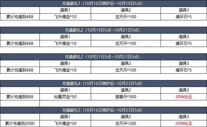 【活动简介】活动期间累计充值达到指定金额即可领取惊喜礼包!