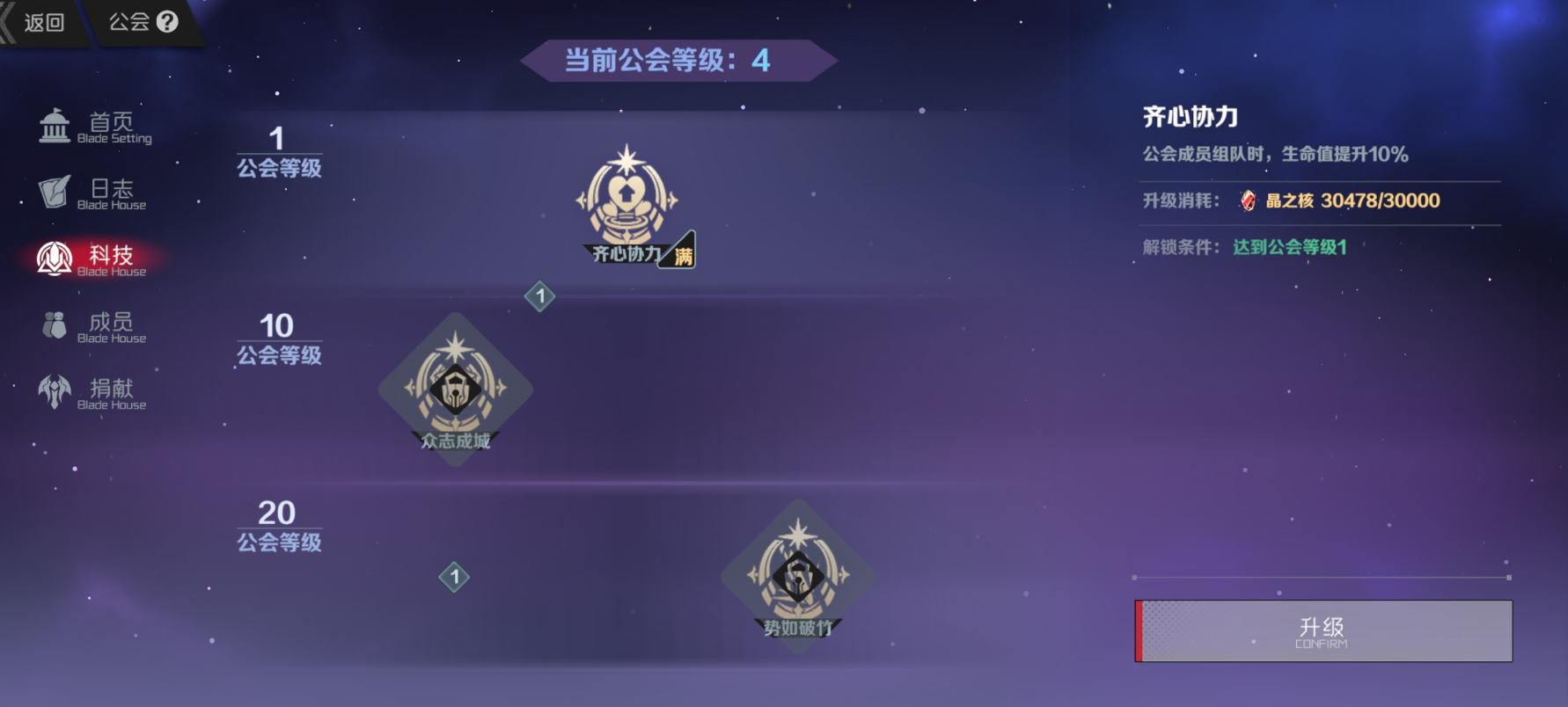 目前的科技还比较简陋,主要是提升公会成员组队的效果