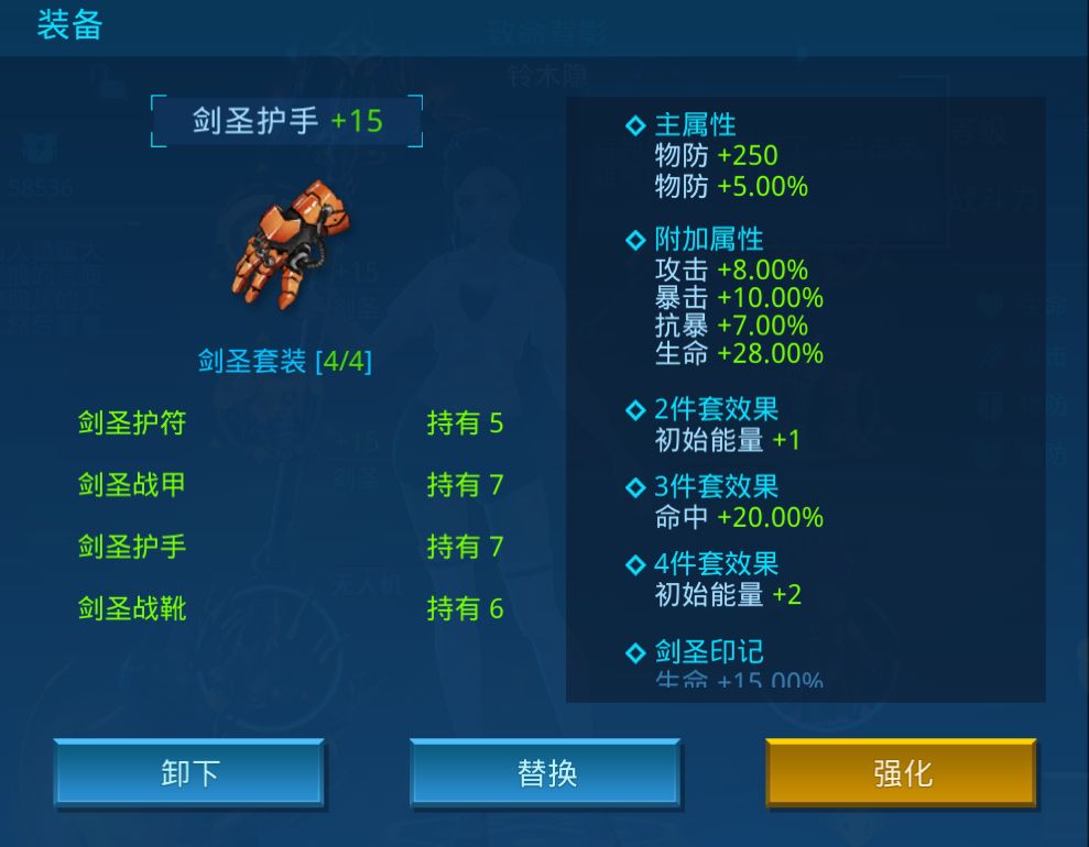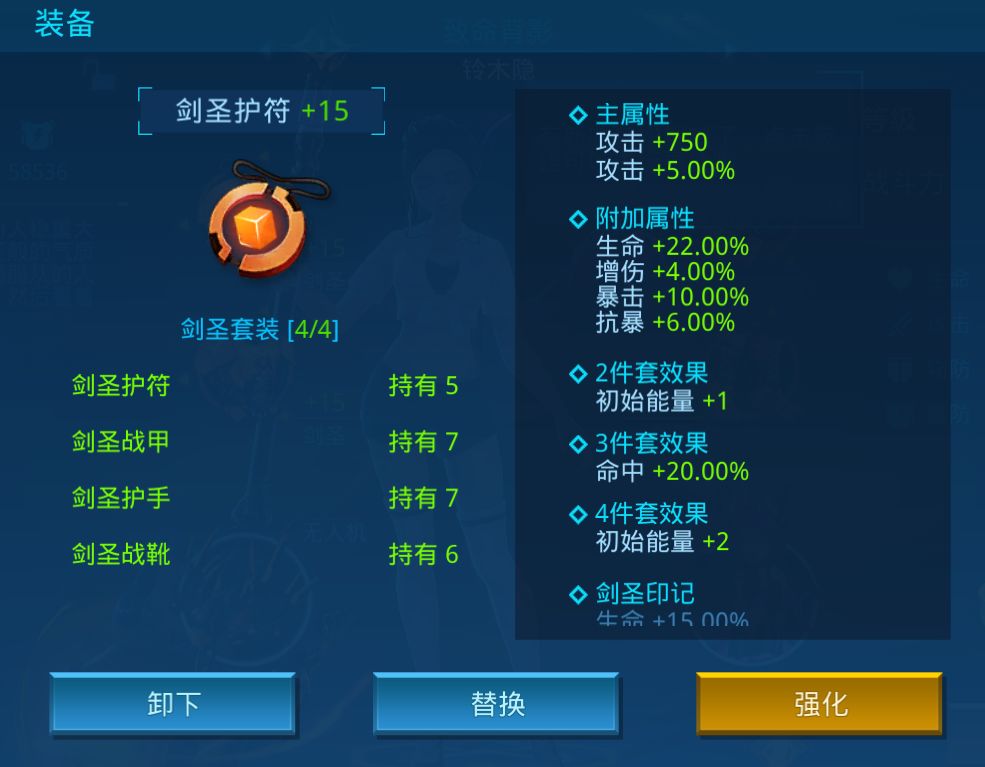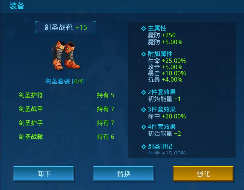 装备固定属性:生命 +11250,攻击 +750,物防 +250,魔防 +250