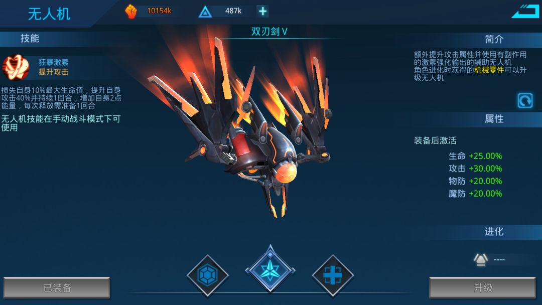攻击V无人机百分比增益:生命+25%,攻击+30%,物防+20%,魔防+20%