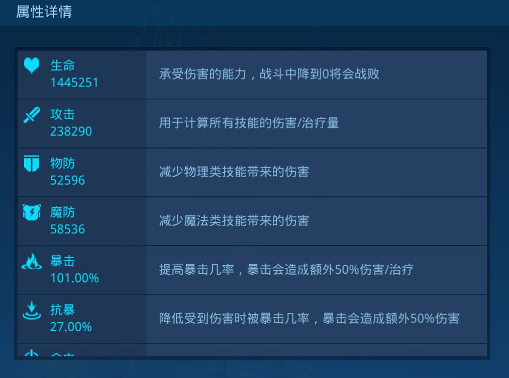 英雄有4个主属性:生命、攻击、物防、魔防,6个副属性:暴击、抗暴、命中、闪避、增伤、减伤。
