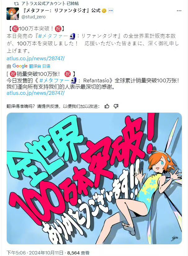 Atlus新作《暗喻幻想:ReFantazio》首日销量100万,拿下第二名![[表情_酷]](https://img.tapimg.com/market/images/edd50e702f508971043f5619f686740e.png)