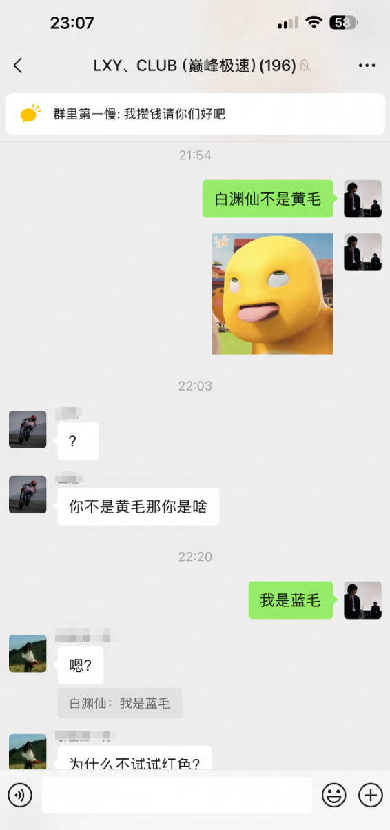 从赛车到发色,听铁哥们的意见就对了!期待看到群主把那玩意染成绿sai的,直接化身狂野男孩征服全体群员!👏