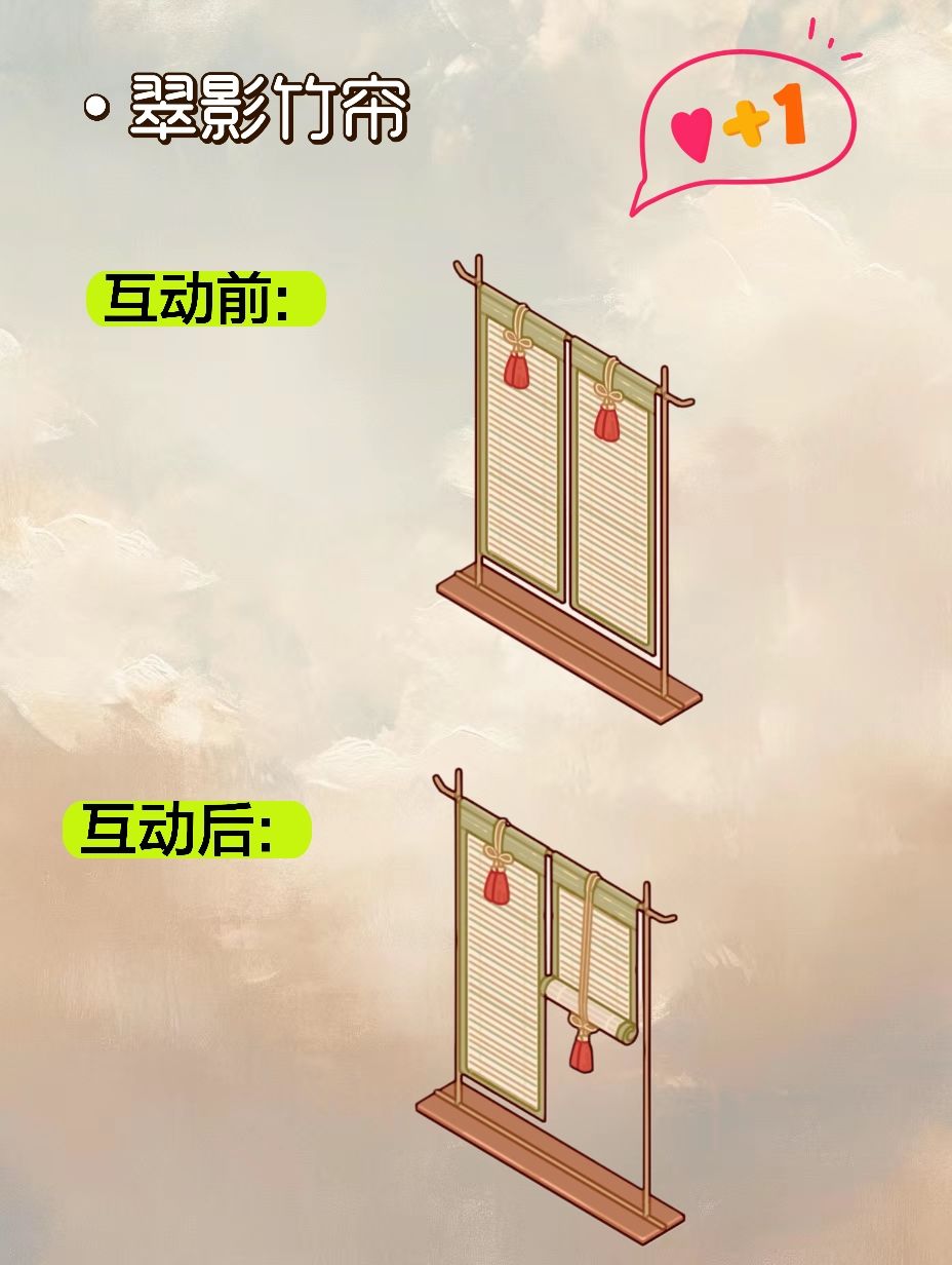 新套间的新家具居然也有可以互动的,真的太上头了,迷上这个帘子了,积分兑换又兑换一个帘子,太可爱了。