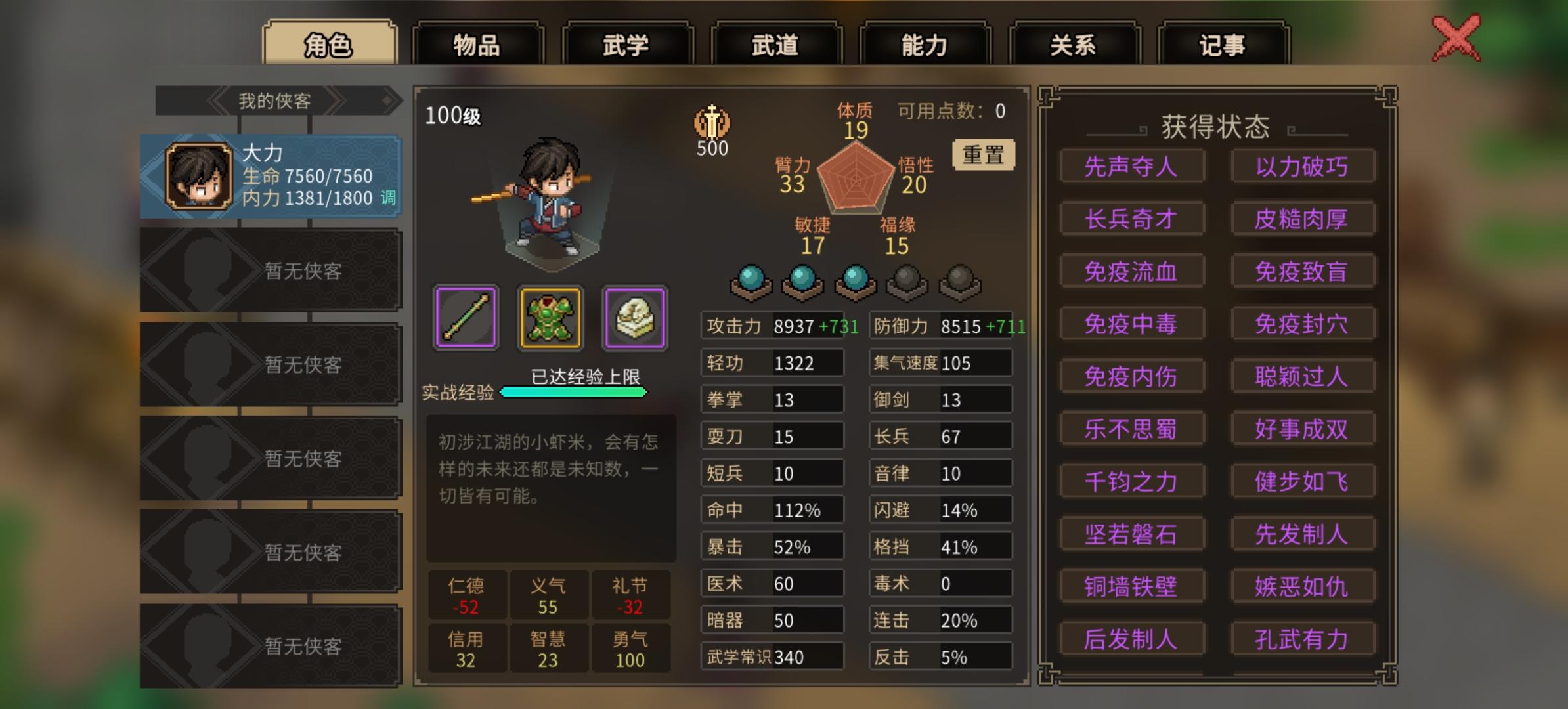 这游戏不能屠城,比如无名小村的三个孩子,敲不死,但是你走了之后再回去村子就空了。还有城里的百姓、商人杀不光,总会刷新,而且还会掉好感,完全没有奖励,只有惩罚,这个设计不是很爽,就应该把这个游戏里杀的一个NPC都不剩才爽。
