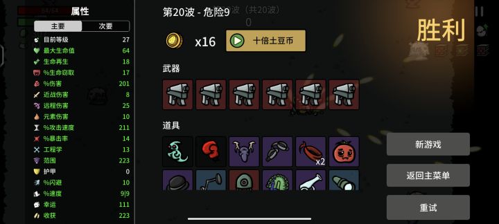 简单攻略:优先6把二级武器,然后冲红(4级),一级装备掉两血,部分可以拿。由于拿的冲锋枪,依旧优先远程,伤害,高血和高甲看着拿,平a和暴击吸血算后期不会两下直接死。
