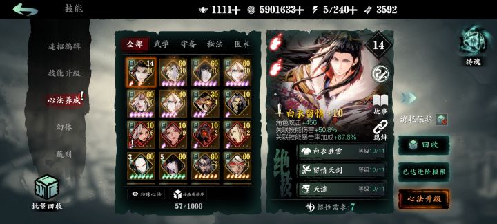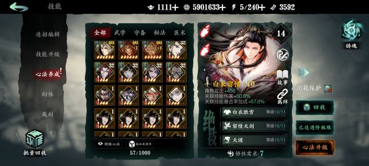 你能消耗哪种就选哪个,解锁了这个任务会给几个属性比较低的几张卡的碎念,点击升级即可,“消耗心法”,需要咱们有一个养成已经达到满级的卡片吞噬才可以升级,无论是铸魂还是绝技还有等级都需要满级,所以咱们前期心法不强还是先凑副卡再说,铭刻慢慢来。