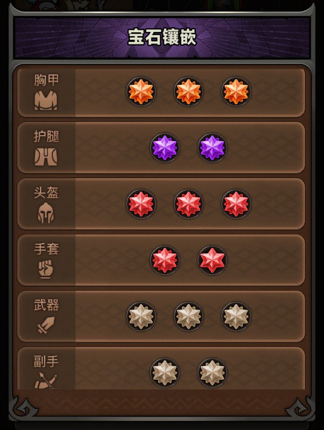 五、宝石优先升级攻击百分比、属性伤害(头盔、手套部位的宝石,你用什么套就用对应的属性宝石)1颗升满级在升级另外一颗