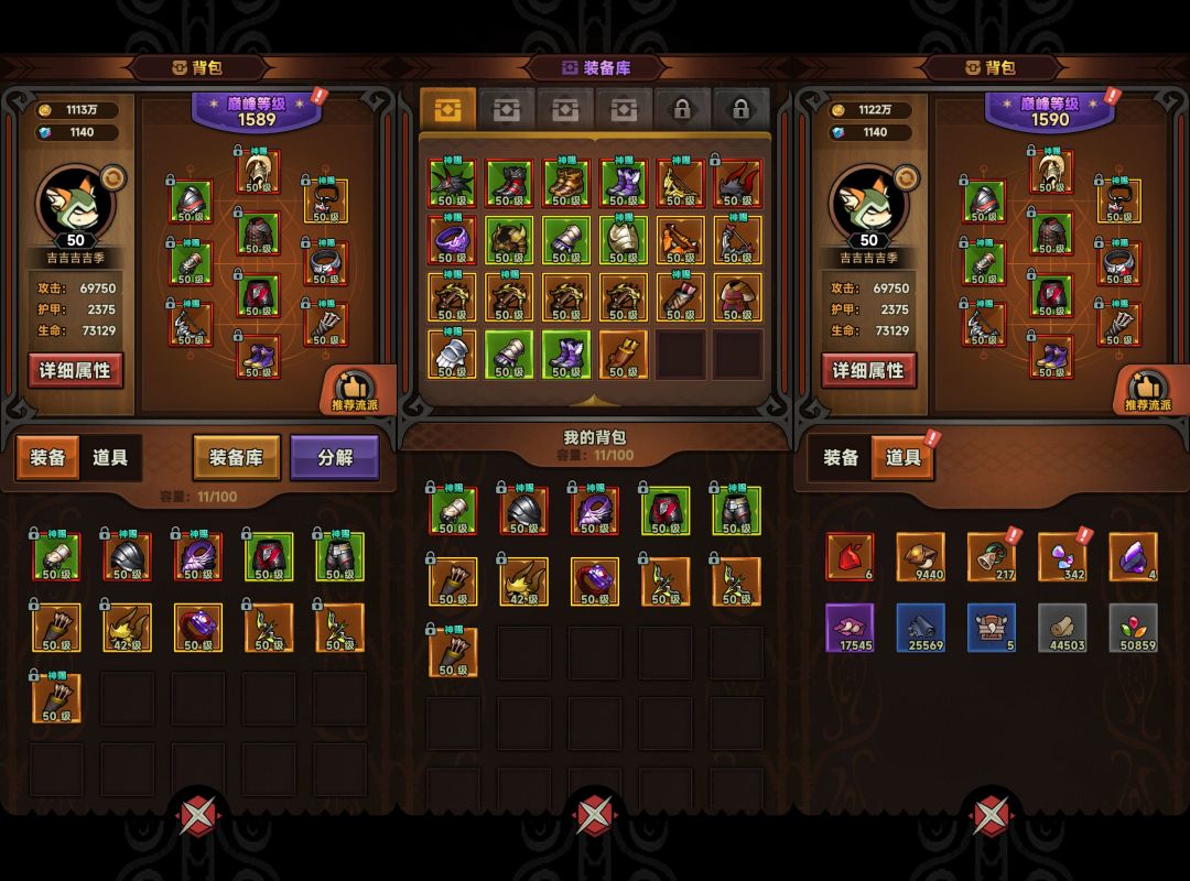 二、能2分内打过地狱50层后就一直刷50层。(50层开始掉太古,个人觉得掉率还可以)期间靠打太古和做太古(神铸之锻)能大幅提升推图的速度